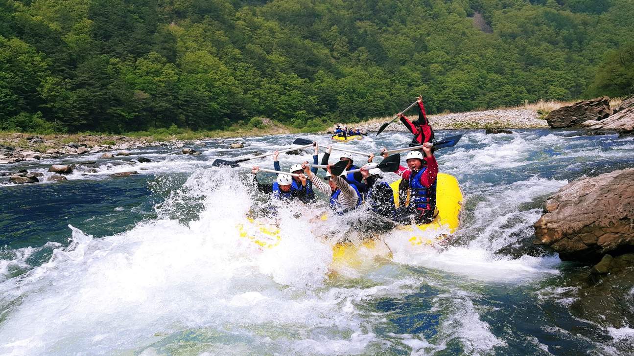 한반도 지형(위) 래프팅 하는 모습(아래)
