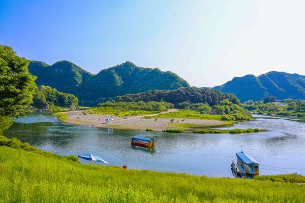 영월의 자연은 거대한 생명체처럼 살아 움직이는 듯합니다. 그 중심에는 ‘동강’이 있습니다. 동강은 태백에서 시작된 물줄기가 영월을 휘감으며 만든 협곡과 계곡의 조합으로, 때론 거세고 때론 고요한 흐름으로 방문객의 마음을 사로잡습니다. 특히 ‘한반도지형 전망대’는 자연이 만든 경이로움을 상징하는 장소입니다. 강의 흐름이 한반도와 흡사한 모양을 이룬 이곳은 마치 하늘에서 내려다본 지도를 보는 듯하여, ‘자연의 예술품’이라 불리기도 합니다.