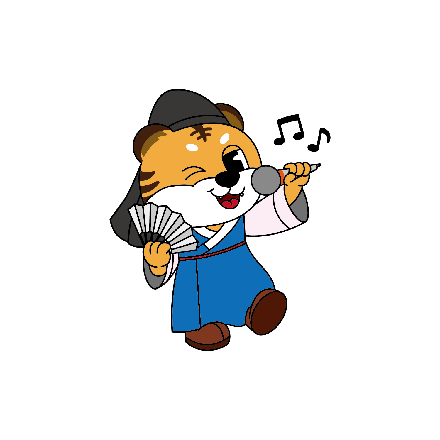 노래하는 범도령은 전통과 현대가 어우러진 호랑이 캐릭터로, 조선시대 도령의 복장을 하고 노래 부르기를 즐기는 도깨비 친구입니다.